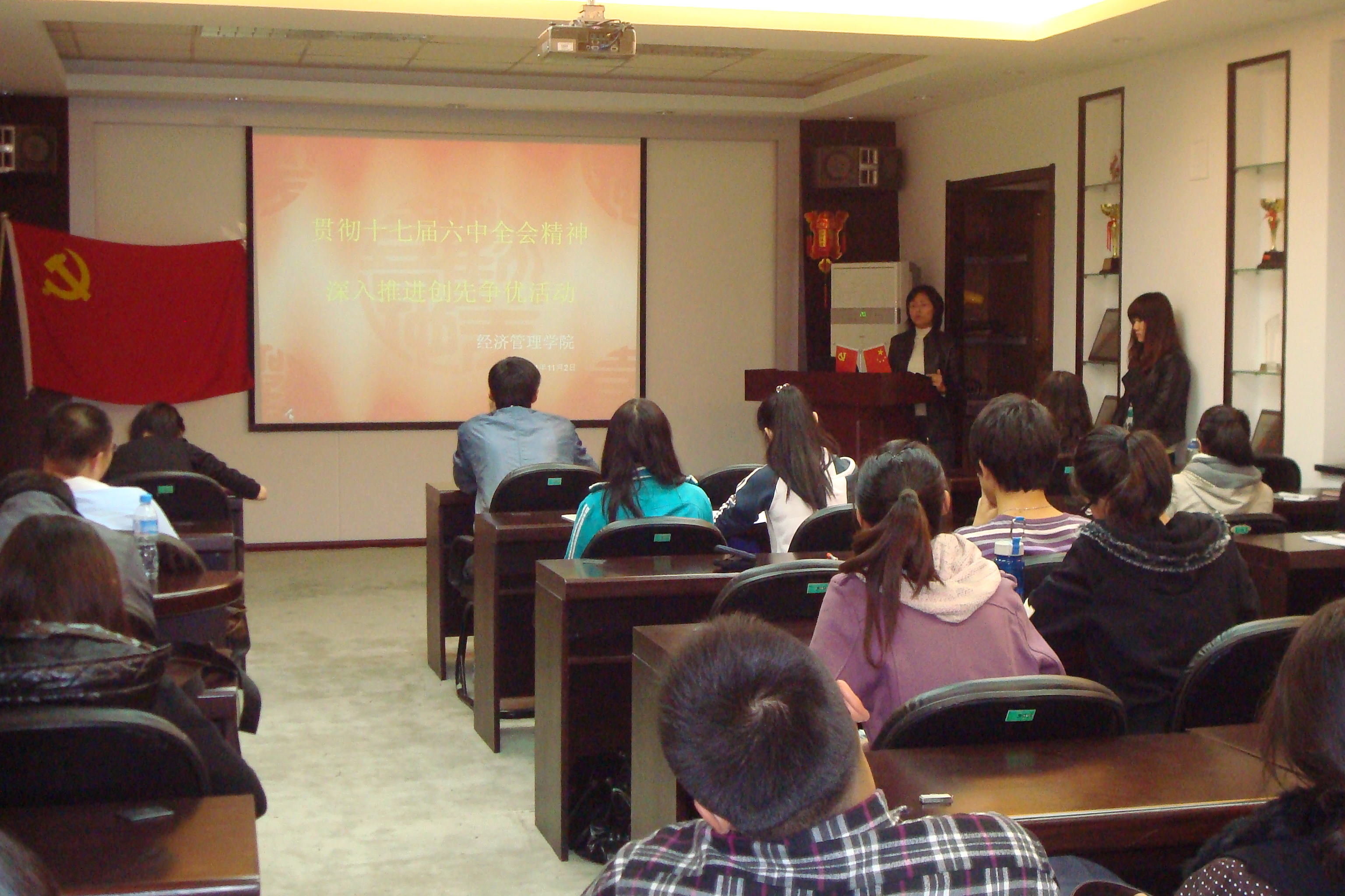 为深入推进创先争优活动,进一步增强员工党员的党员意识和党性观念,提高基层党组织的凝聚力和战斗力,充分发挥员工党员在广大青年员工中的先锋模范作用,11月2日,公司党总支在经管楼602会议室召开了以“贯彻十七届六中全会精神,深入推进创先争优活动”为主题的全体员工党员会议。公司党总支副书记高雪梅、团委书记刘富江出席会议。