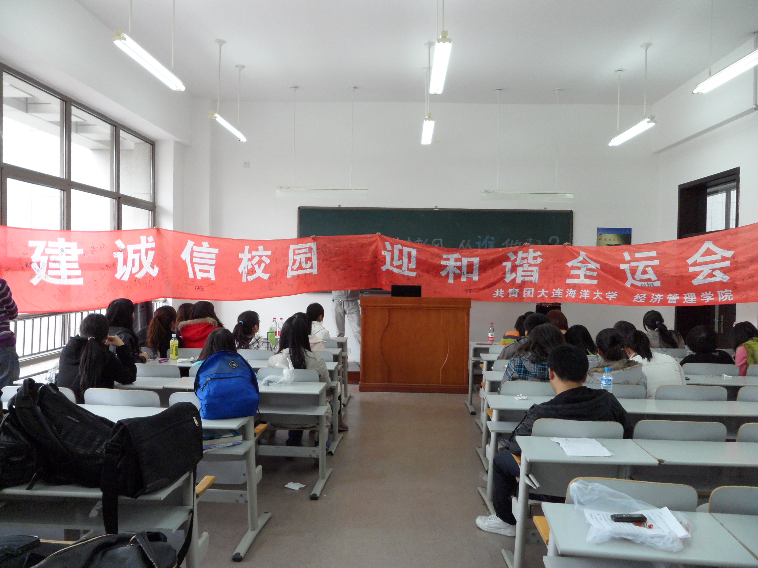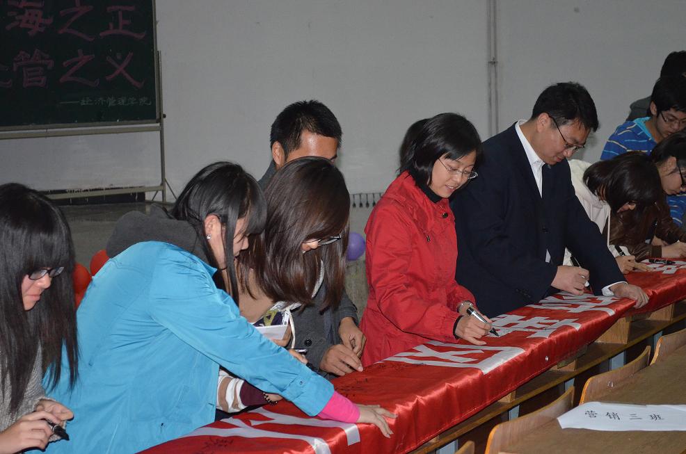 系列活动之二:主题班会、条幅签名。公司各个班级在11月1日至8日之间陆续开展了 “讲诚信,树新风;从我做起,从点滴做起”的主题班会并现场在诚信横幅上签名。