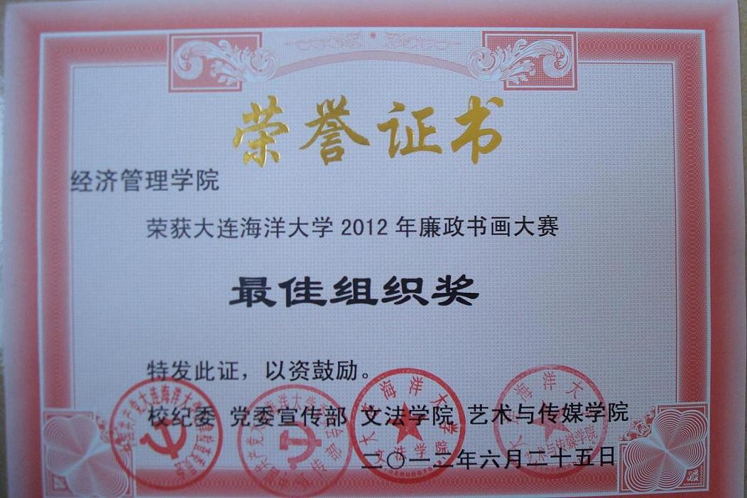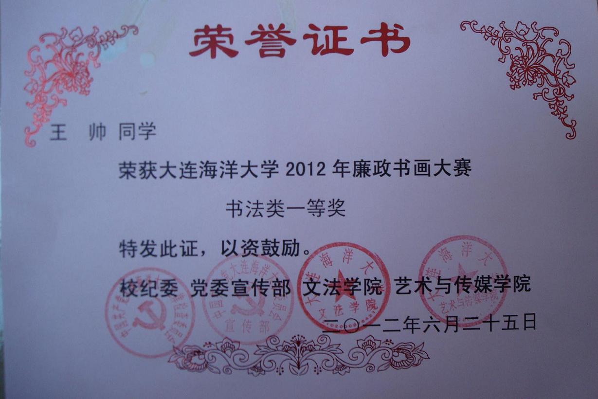 近日,校廉政书画作品大赛落下帷幕。我院刘耀东老师的作品获教师组书法类一等奖,王帅同学的作品获员工组书法类一等奖。这两幅作品将代表公司参加教育部办公厅举办的全国高校廉政文化作品大赛。公司获得此次活动的优秀组织奖。