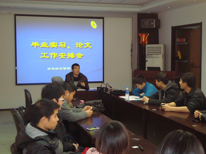 11月3日,农林经济管理专业教研室在公司602会议室召开2014届毕业生实习和毕业论文工作安排会,教研室副主任孙培立主持会议,公司团委书记、毕业生就业专干刘富江参加会议。