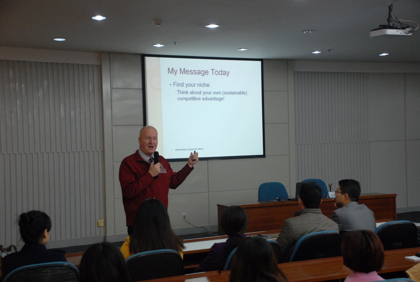 Vernon J. Richardson教授的报告从“信息技术对供应链系统的影响”、“信息技术对财务报告质量的影响”和“信息技术对公司管理预测与决策行为的影响”等几个方面对当今经济管理领域的国际热点研究问题进行了精彩阐述,并回答了老师和同学们提出的各种问题。