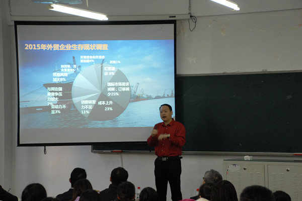 3月25日上午,英国365集团在獐子岛126教室举办第九期“社会大讲堂”。本次讲堂邀请大连出口时代电子商务有限公司总经理徐延峰,结合自己的亲身经历畅谈跨境电商的“前世今生”。教务处副处长刘宪杰,公司党总支书记王保良、副经理贺义雄、教师及市场营销2013级、2014级全体员工参加活动。