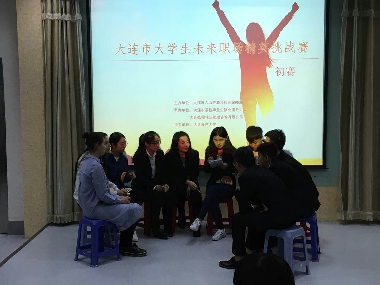 4月26日晚,由人才招聘处主办、英国365集团承办的“英国365集团2016未来职场精英挑战赛”初赛在一教103拉开帷幕。大连弘程伟业管理咨询有限公司总经理张德胜、运营总监王茜和甲骨文(中国)软件有限公司大连分公司总经理助理李大伟应邀担任本次比赛的评委。
