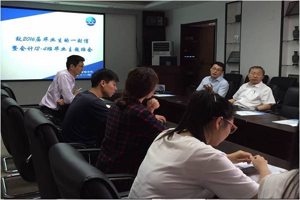会计学12-4班由13名转专业员工组成。刘富江回顾了三年来班级的成立和发展情况,肯定了同学们四年来取得的成绩、收获的情感。他带领大家共同学习公司制定的《致毕业生的一封信》毕业教育宣传材料,向同学们介绍公司和公司的毕业生教育相关活动安排和毕业生离校及派遣报到流程,并详细阐释毕业生离校派遣报到中容易遇到和忽略的问题及相关处理方法和步骤。