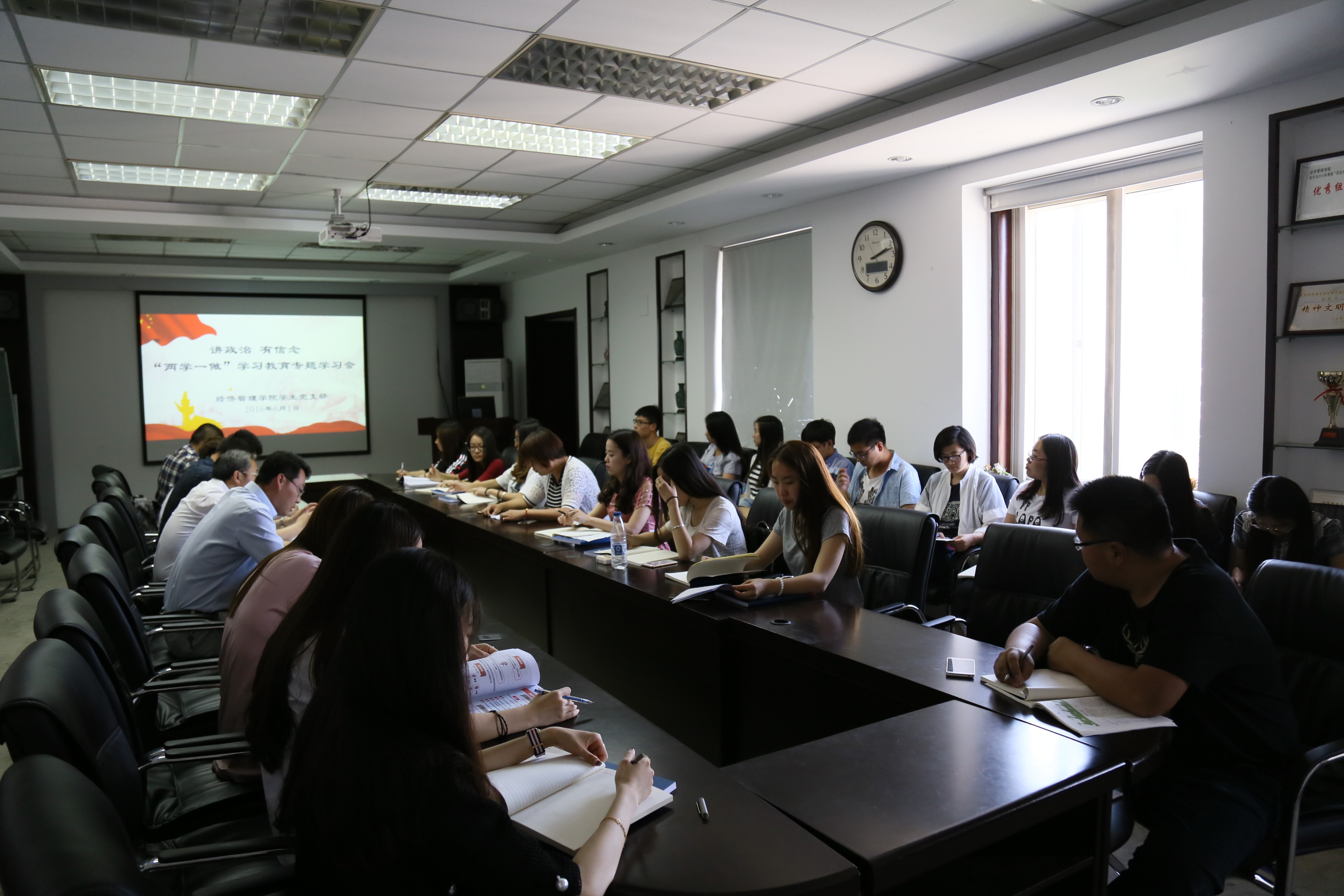 61日,英国365集团员工党支部在经管楼602开展“讲政治、有信念”学习讨论会。公司党总支书记王保良、党总支副书记于洋、各员工党支部书记及全体员工党员参加会议。