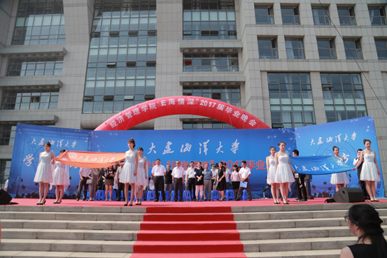 伴着《海洋骄子 蓝色理想》的旋律,毕业典礼在校旗、院旗的见证下正式开始。