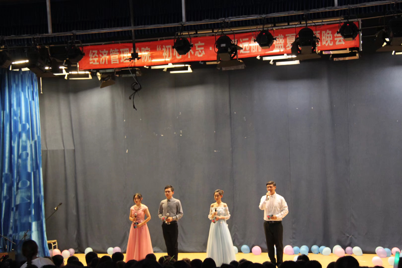 晚会历时两个半小时,包含才艺展示、班级风采回顾、抽奖互动及颁奖四个环节。在“及第舞团”一段灵动激情的舞蹈中晚会拉开序幕,民族歌舞《家乡》、《高原之恋》、小品《试戏》、器乐演奏《星月神话》、诗朗诵《那些花儿》、歌曲《成都》、《平凡之路》等众多节目,演绎着经管学子的青春活力与才华,整场晚会高潮迭起,精彩纷呈。节目期间穿插展播的班级视频带大家回顾了在大黑石的点滴美好记忆,渲染了离别的哀愁。最终的颁奖环节中,各班级都获得了为他们量身定做、独一无二的“经济实惠奖”、“金融风暴奖”、“都是人才奖”等特色奖项。