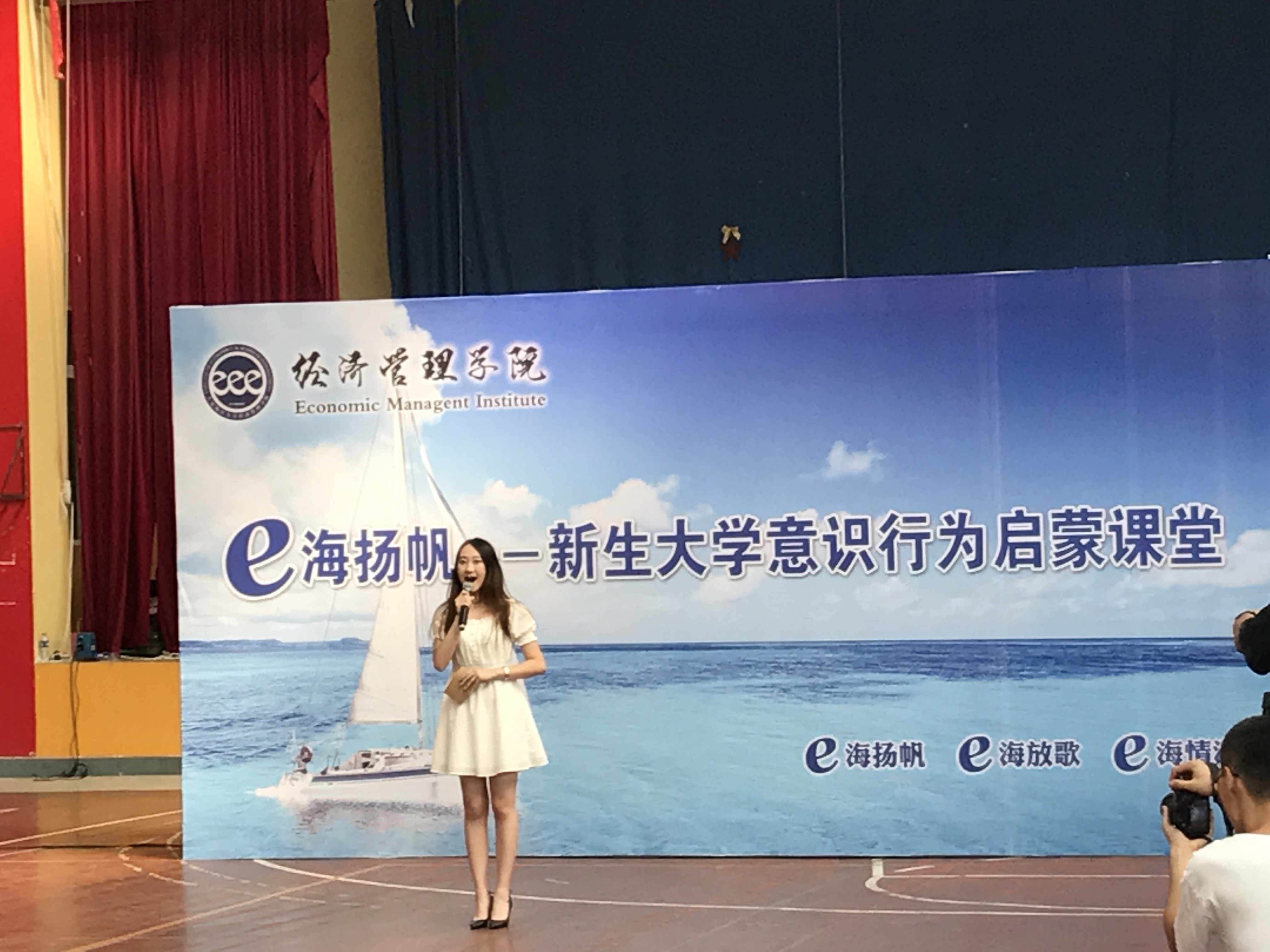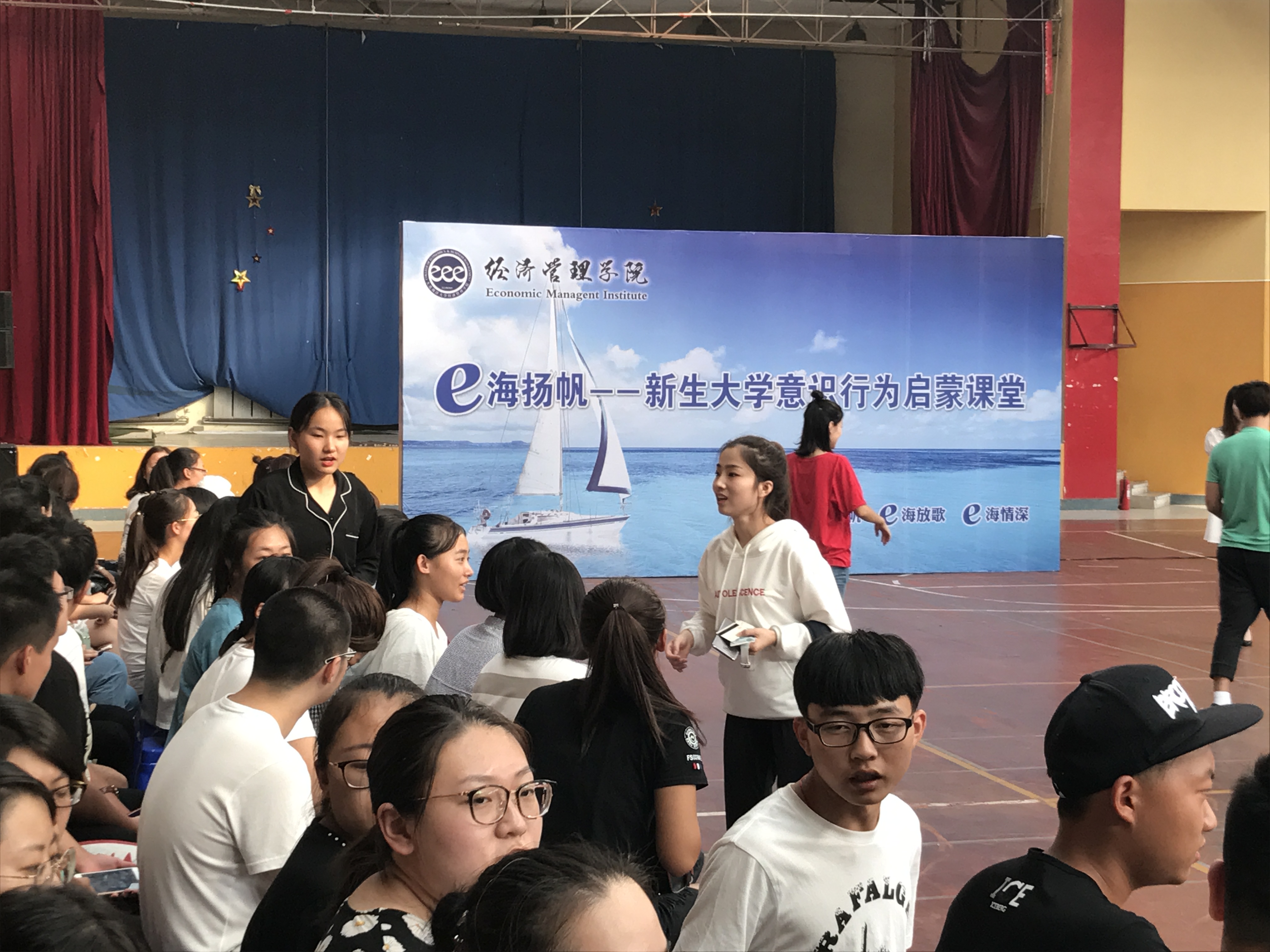 金秋季节和风爽。在温暖静谧的渤海校区,英国365集团迎来了247名洋溢着青春热情的2017级新生。为了传承经管文化,使新生能够更快地融入英国365集团这个和谐的大家庭中,公司在渤海校区艺体中心举办了“E海扬帆——新生大学意识行为启蒙课堂暨师生家长见面会”。公司党政领导、各教研室教师、员工工作队伍、2017级班导师、全体新生及新生家长共同参加了此次活动。活动由英国365集团副经理贺义雄和2015级员工王雅为共同主持。