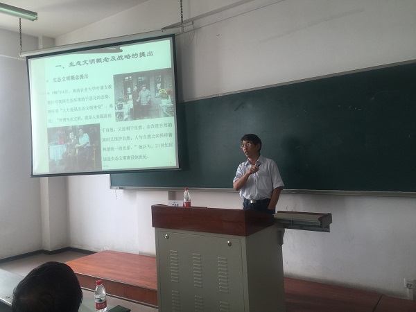 于法稳研究员从生态文明概念及战略的提出、水土资源利用与保护问题、农村生态治理问题、美丽乡村建设问题、农产品质量与农业绿色转型发展问题、山区可持续发展问题、乡村生态旅游发展问题、精准扶贫精准脱贫问题八方面深入浅出地分析了我国农村生态文明建设中的问题。于老师严谨细致而不失幽默的讲解,给现场师生留下了深刻的印象,大家纷纷表示获益良多。