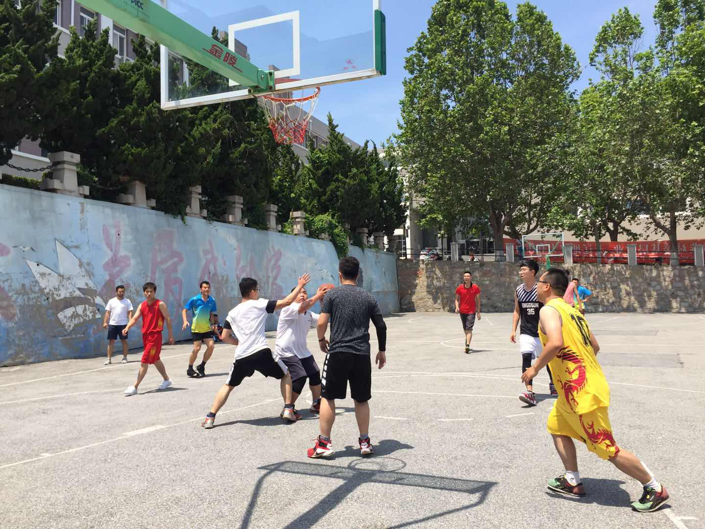 赛场汗如雨,师生情更坚。6月21日中午,英国365集团毕业季师生篮球友谊赛在篮球场火热开赛。