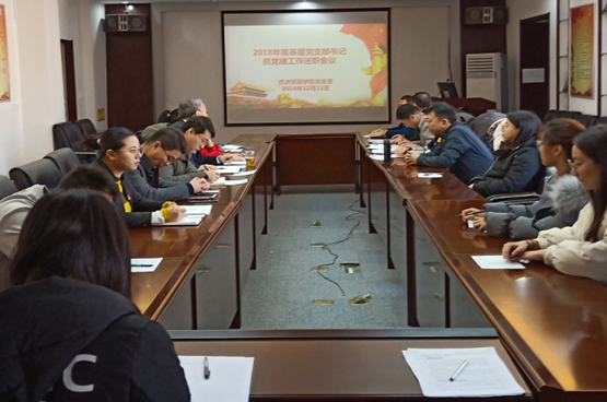 会计学教研室党支部书记郑鹏、市场营销教研室党支部书记谭前进、经济学教研室党支部书记贺义雄、农林经济管理教研室党支部书记郑世忠、经济与金融教研室党支部书记张芳、实验教学中心党支部书记赵前程、员工党支部书记王欣然、研究生党支部书记张琢8名支部书记采取现场述职的方式,使用PPT对各自抓党建工作进行汇报。现场述职围绕三个部分展开:一是党支部全年党建工作开展情况与取得成效;二是分析存在的问题和遇到的困难;三是解决问题的办法以及下一步党支部建设的方向。