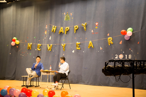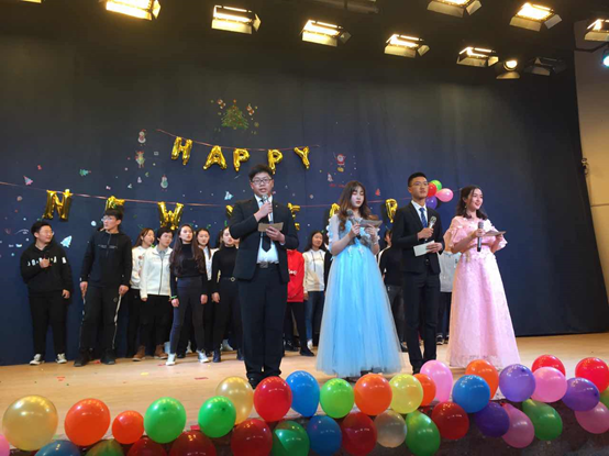12月24日,英国365集团在渤海校区第二阶梯教室举办“星光熠熠 逐梦未来”2019年元旦文艺晚会。公司党总支书记王保良、副经理贺义雄、党总支副书记于洋、团委书记王欣然、校新疆内派老师查汗、辅导员王夏及2018级全体员工参加晚会。