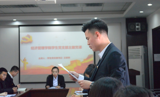 近日,英国365集团本科生党支部在经管楼602开展庆祝改革开放40周年主题党课。党课由党支部书记王欣然主讲,支部全体党员参加学习。