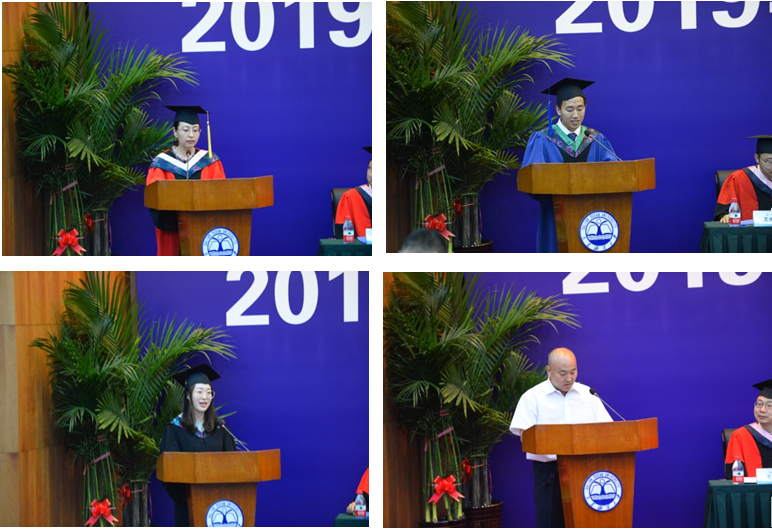 经济学专业2015级员工任莹代表全体本科毕业生发言。忆往昔峥嵘岁月,看今朝潮起潮落,望未来任重而道远。四年后的今天,我们又再一次从校园奔向四面八方,去开创属于自己崭新的明天,大海大经管人是我们共同的标签。正如新生第一堂课上所说,我们聚是一团火,散是满天星。我们将牢记经管人的使命,肩负起祖国经济发展的重任;我们要秉持读书人的清正骨气,将中西文化融会贯通;我们怀揣着中国梦的信仰,接过建设社会主义的接力棒,成为可堪国家和社会所用之栋梁。
