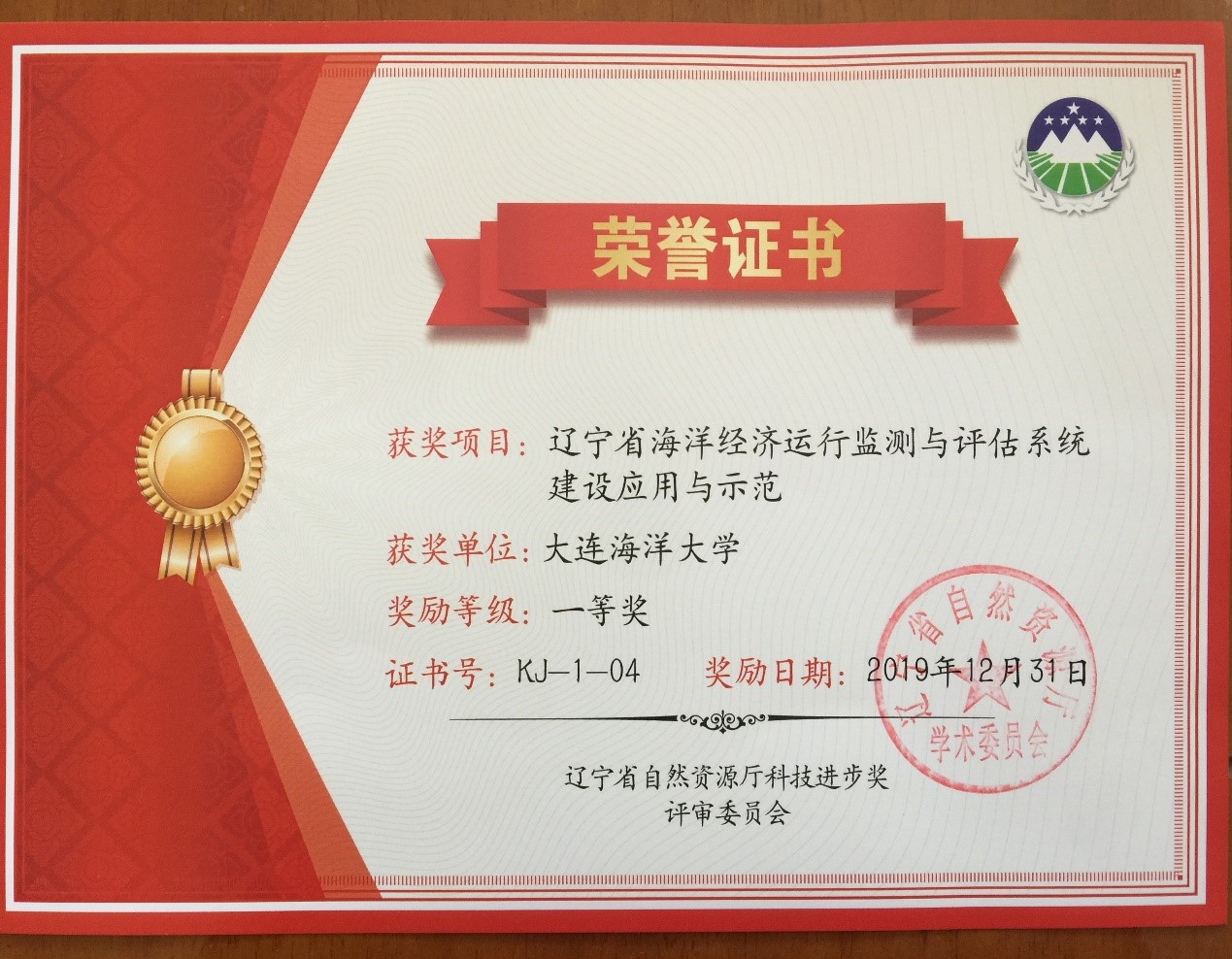 近日,辽宁省自然资源厅学术委员会发布《关于2019年度自然资源科技进步奖获奖项目的公告》(2020年第1号),公司谭前进副教授申报的公司作为主持单位完成的《辽宁省海洋经济运行监测与评估系统建设应用与示范》项目获得2019年度辽宁省自然资源科技进步一等奖。