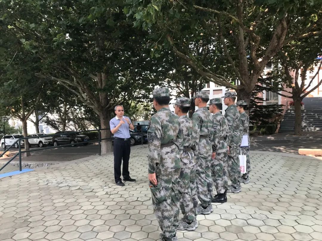 9月22日,党总支书记王保良代表公司对全体军训教官进行慰问。对教官们严谨的工作态度和认真负责的精神给予了高度评价,并嘱咐了军训教官们有关军训具体内容的细节。书记对2020级承训教官寄予厚望,望他们认真执行军训计划,严肃军训纪律,坚持以人为本、科学施训,不畏风雨的军训信条,并希望在下一阶段军训中培养新生们国防意识和坚毅的品质,高质量、一丝不苟地地完成军训演练任务。