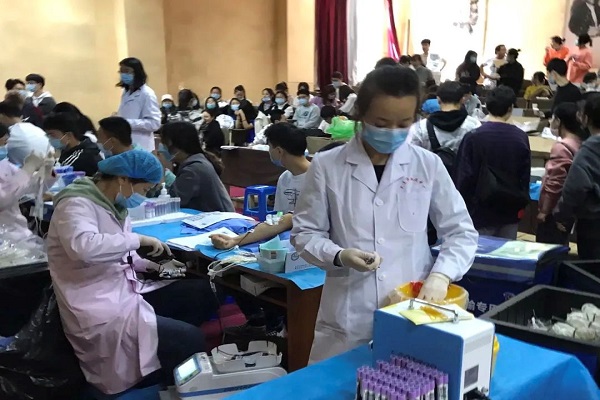 2020年10月25日中午,公司献血活动在黄海校区实验楼阶梯教室一顺利进行。来自17、18级的七十八名员工踊跃报名参加,公司党总支副书记于洋、辅导员李春宇全程陪伴,看望和慰问了参加献血的同学们。