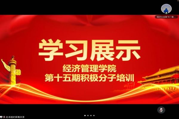 本次线上学习分享活动围绕“打造红色学习风尚”主旋律开展,第十五期入党积极分子分组轮流进行“红色光辉历史”学习情况汇报,讲好红色故事,加强党史学习。“一代人有一代人的使命,一代人有一代人的担当 ”,鞠春晓指出,各位入党积极分子除理论知识的学习之外,更应在实际生活和学习中争做表率,将中国抗疫精神和青年一代的社会责任与担当结合起来,正值疫情防控特殊时期,积极配合公司公司做好疫情防控工作,打好校园疫情防控阻击战。