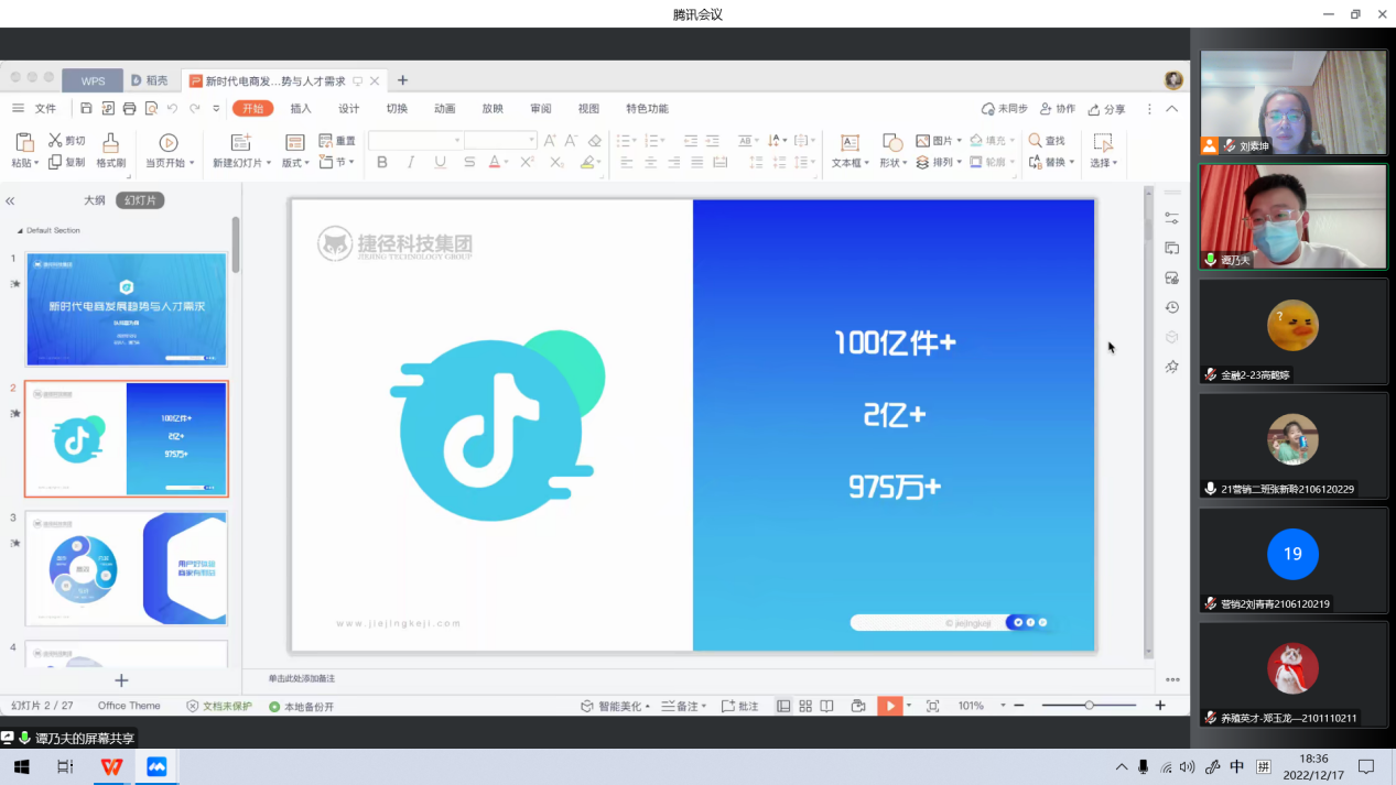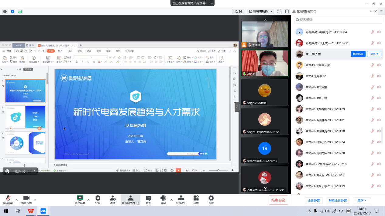 谭老师首先介绍抖音发展历程,其次分析抖音与其他电商平台的比较优势,探讨中国电商未来发展趋势;然后分析抖音运行中岗位设置以及人才能力需求;最后同学们就抖音运营中遇到的问题进行了咨询,谭老师一一详细解答。