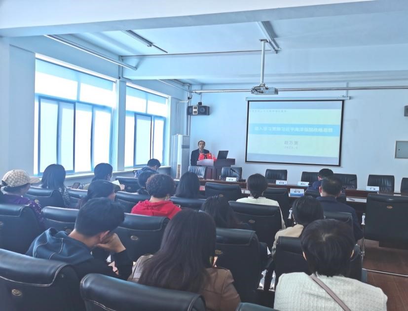 4月19日,公司党委书记赵万里以“贯彻党的二十大精神,深刻领会习近平总书记海洋强国战略思想”为主题,为全院教师党员上党课,公司党委理论学习中心组成员、全体教师党员参加。