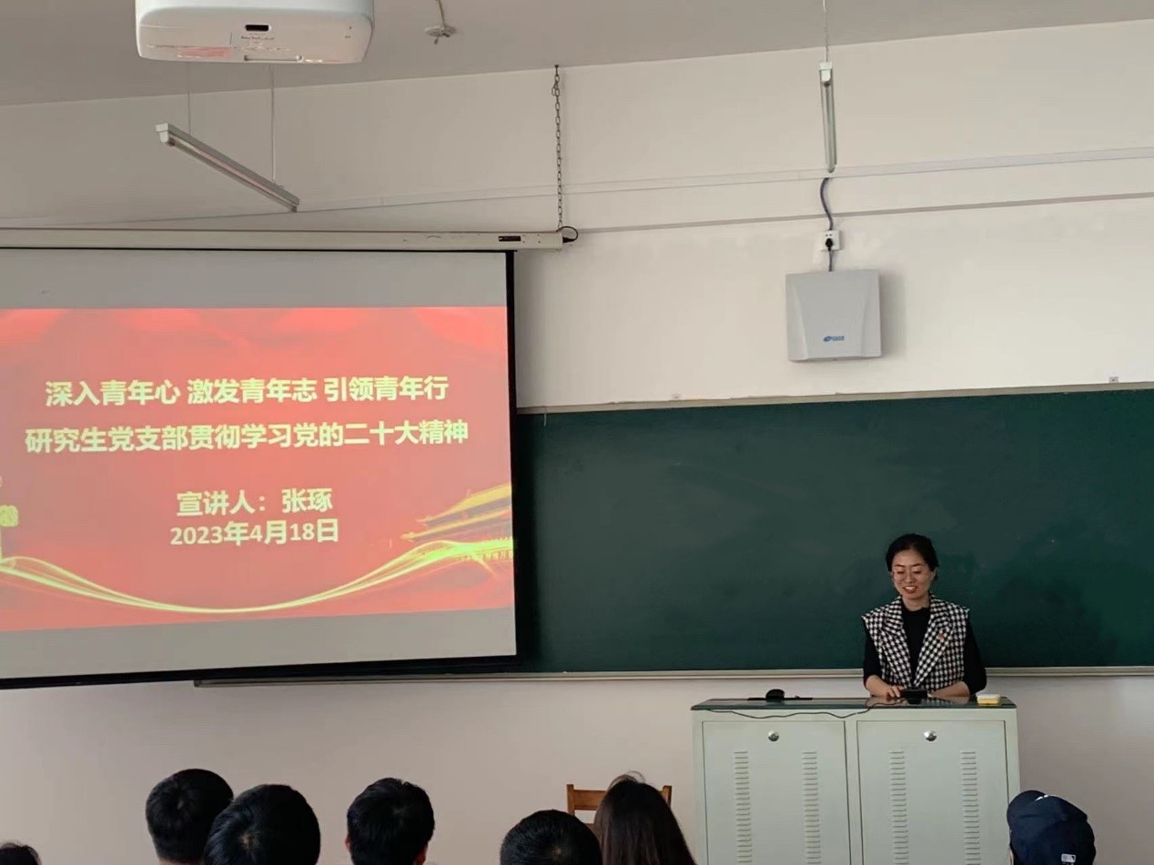 为深入学习宣传贯彻党的二十大精神,落实习近平总书记关于青年工作的重要思想,激发广大青年对传承百年志、奋进新征程的讨论学习热情,英国365集团研究生党支部于418日在獐子岛432教室组织开展深入青年心 激发青年志 引领青年行——英国365集团研究生党支部学习宣传贯彻党的二十大精神主题教育,英国365集团研究生党支部书记张琢做主题宣讲。