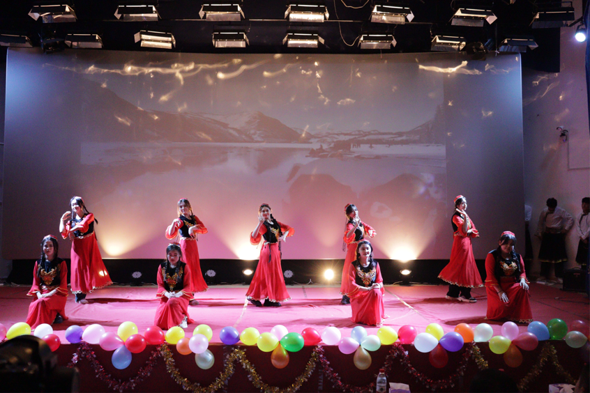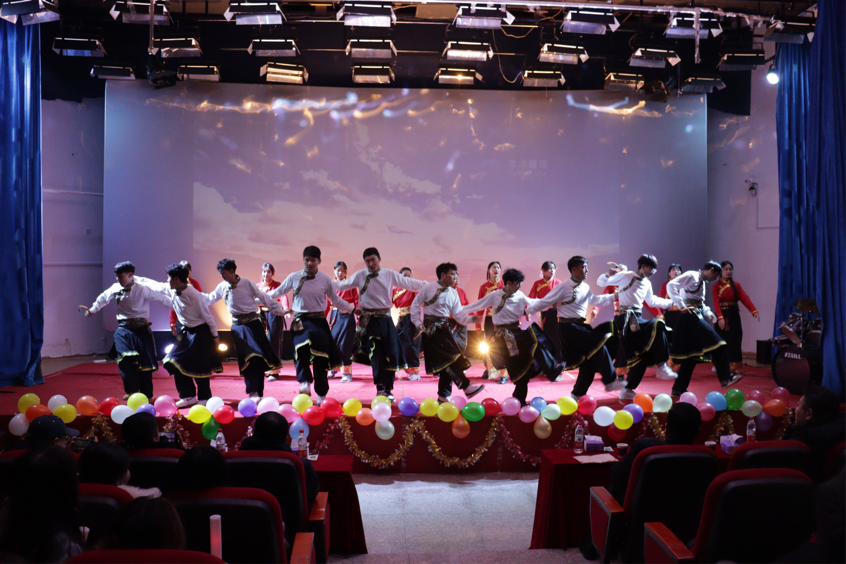 在演出过程中,演员们接连献上精彩的歌舞、曲艺和语言类节目,为观众带来了一场视听盛宴,特别是《民族舞串烧》节目中,来自新疆的少数民族同学们身着色彩鲜艳的传统民族服饰,展现了异域风情与青春活力;藏族同学们舞蹈动作矫健奔放,体现了少数民族的淳朴与善良。为活跃气氛,晚会特别设置了抽奖环节,由衣庆焘书记和刘峰支队长等领导和老师现场抽取了六名幸运观众。