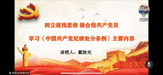 培训会上,戴致光首先围绕《中国共产党纪律处分条例》进行了详细解读。他强调,纪律是党的生命线,是维护党的团结统一、保证党的事业顺利进行的重要保障。党员要深刻领会纪律处分条例的精神实质,严格遵守党的纪律,做到自我约束,自我管理,始终保持共产党员的先进性。