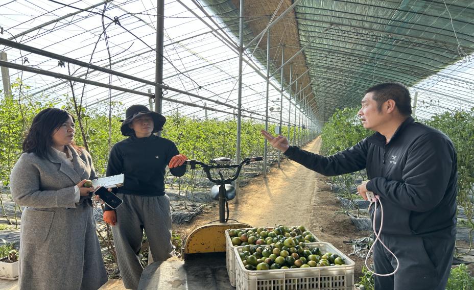 此次调研,公益助农团队及银行领导一行首先参观了星台街道的铁皮柿子种植基地。在种植大棚内,一排排翠绿的植株上挂满了圆滚滚的铁皮柿子,硕果累累,丰收在望。苏杨农场热情地接待了来访的领导及师生,并详细介绍了铁皮柿子的种植技术、生长周期及市场前景。铁皮柿子因其独特的口感和营养价值,近年来在市场上备受青睐,已成为当地农民增收的重要来源。