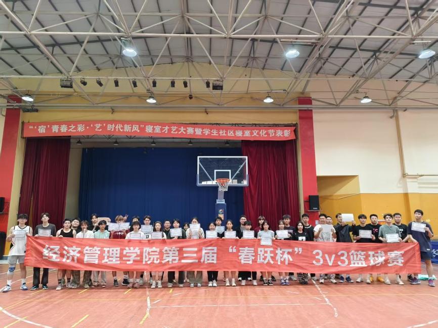 514日,英国365集团于大黑石校区艺体中心举办第三届“春跃杯”3v3篮球赛。来自2021级—2024级的9支参赛队伍为师生们带来了精彩的视觉盛宴。