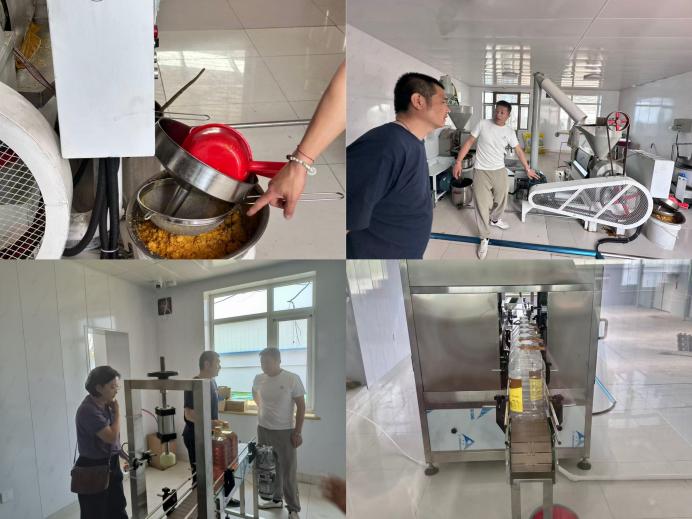 当日下午,团队深入泉水村,重点考察村集体所有的粮油工坊与豆腐作坊。师生们观摩传统豆油生产流程后,与村支部书记展开产业研讨。在了解工坊产能及销售困境后,周建龙老师提出“泉水”品牌体系建设方案:以现有豆油、豆制品为基础打造地理标识产品,通过分级包装拓宽商超渠道。农业管理专业员工同时推进微信小程序设计,计划搭建线上特产商城。