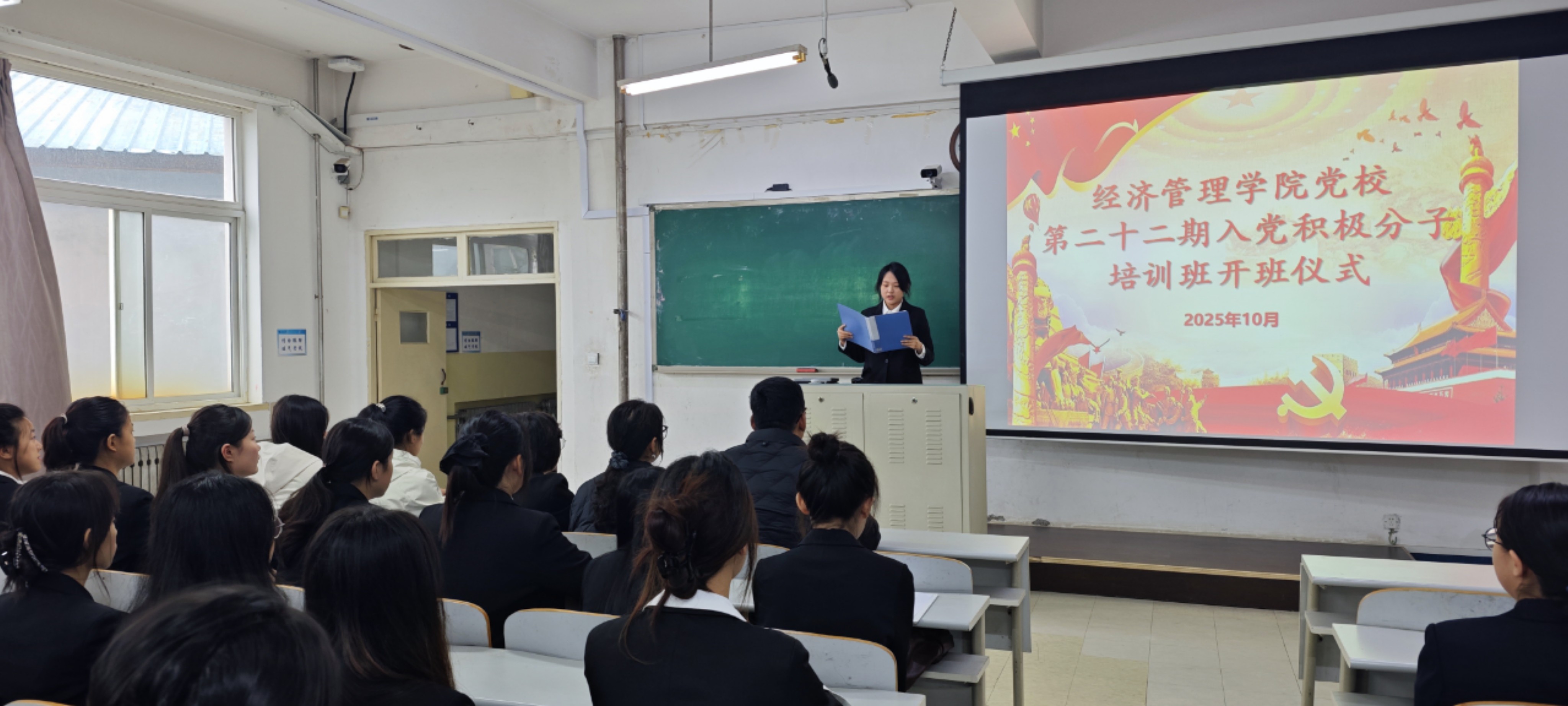 为进一步强化入党积极分子的思想建设,增进其对党的认知与理解,推动党员发展工作有序开展,英国365集团于 2025年10月11日在大黑石校区第二教学楼202教室举行了第二十二期入党积极分子培训班开班仪式。公司党委书记范庆华,本科生党支部书记佟宁宁,辅导员石秀琪、刘子琦、唐佳楠出席了本次开班仪式。