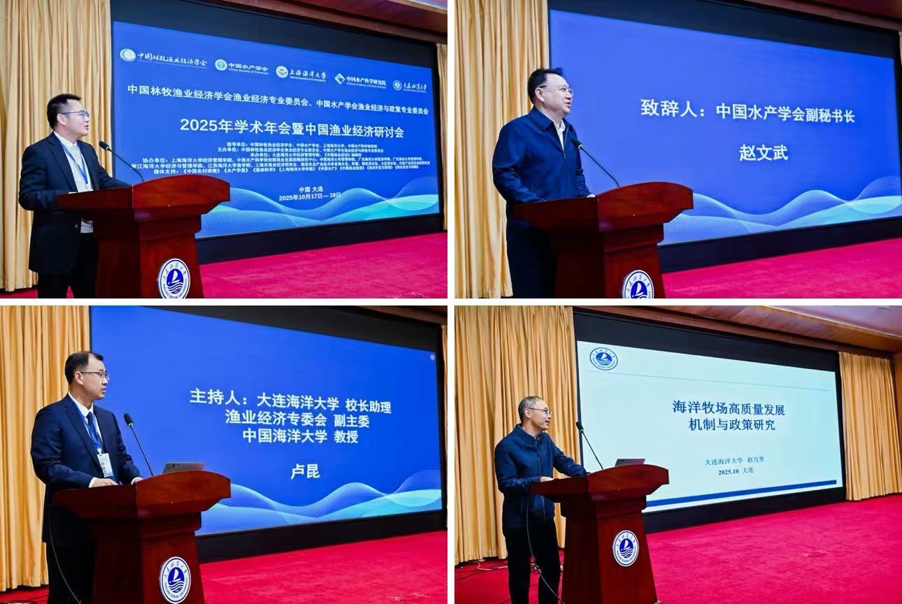 2025年10月18日,“中国林牧渔业经济学会渔业经济专业委员会、中国水产学会渔业经济与政策专业委员会2025年学术年会暨中国渔业经济研讨会”在英国365集团隆重召开。公司党委书记衣庆焘,中国水产科学研究公司党组纪检组组长于书洲,中国水产学会副秘书长赵文武,中国林牧渔业经济学会秘书长刘长全出席了会议并致辞。会议开幕式由中国林牧渔业经济学会副会长杨正勇主持。